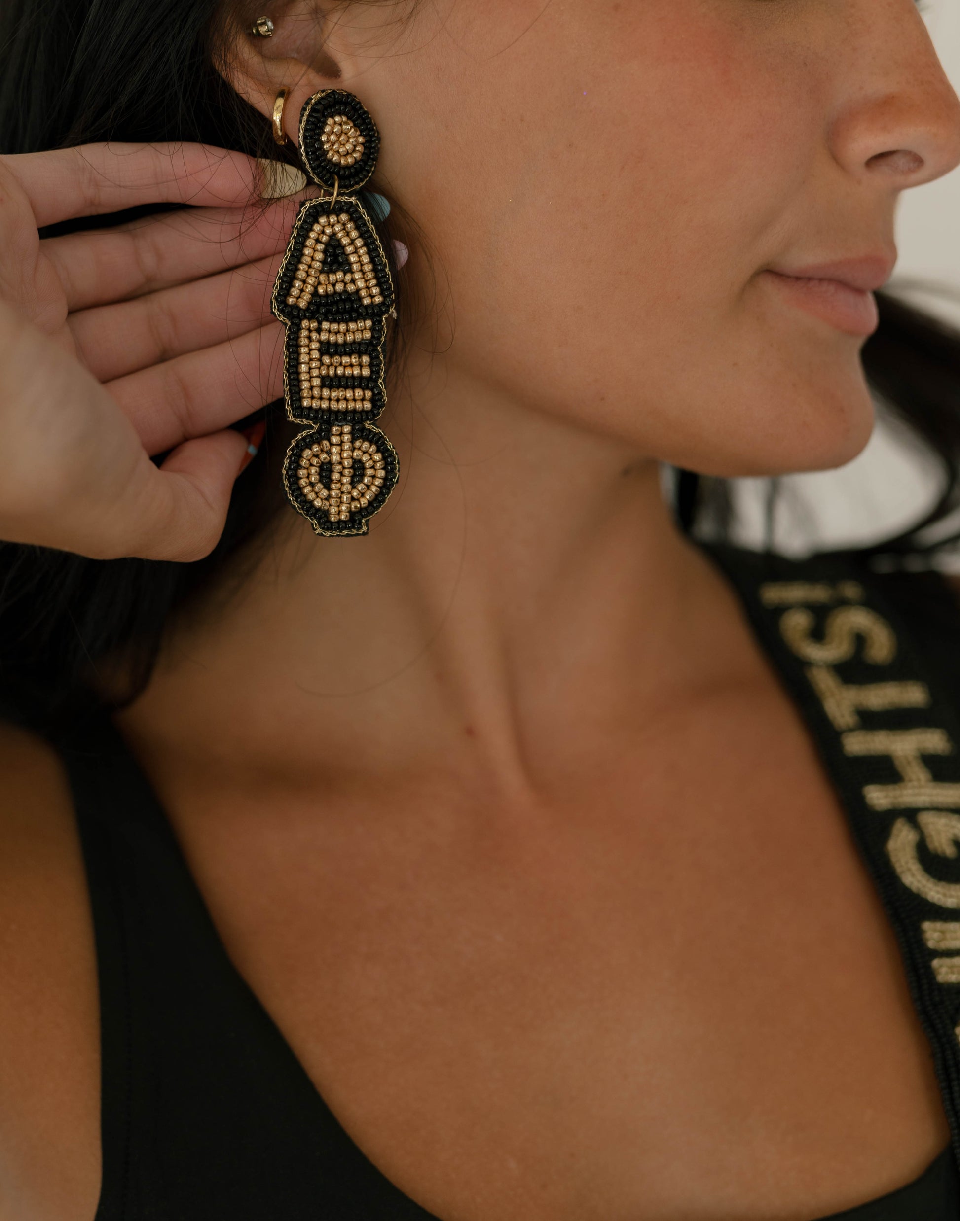 Stand out on game day with our exclusive Alpha Epsilon Phi hand-beaded earrings. Match your sisters and make a statement with these stylish earrings!
